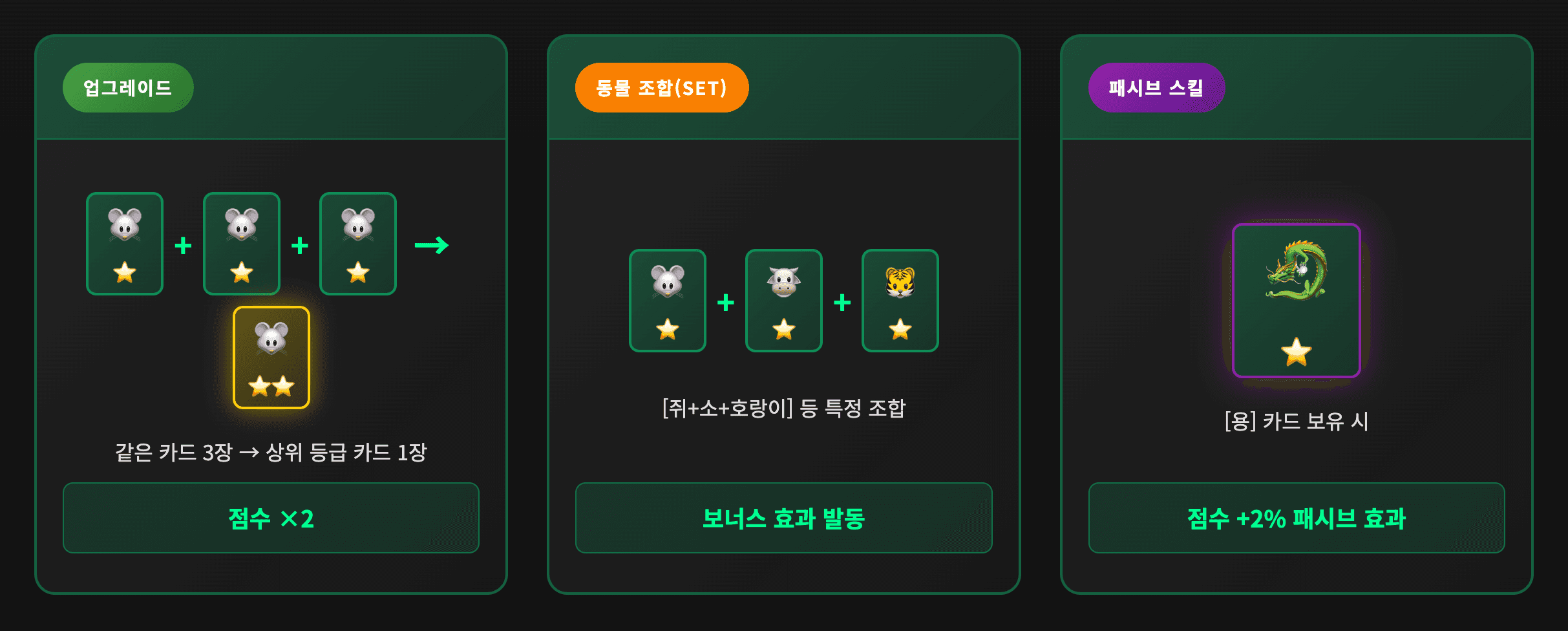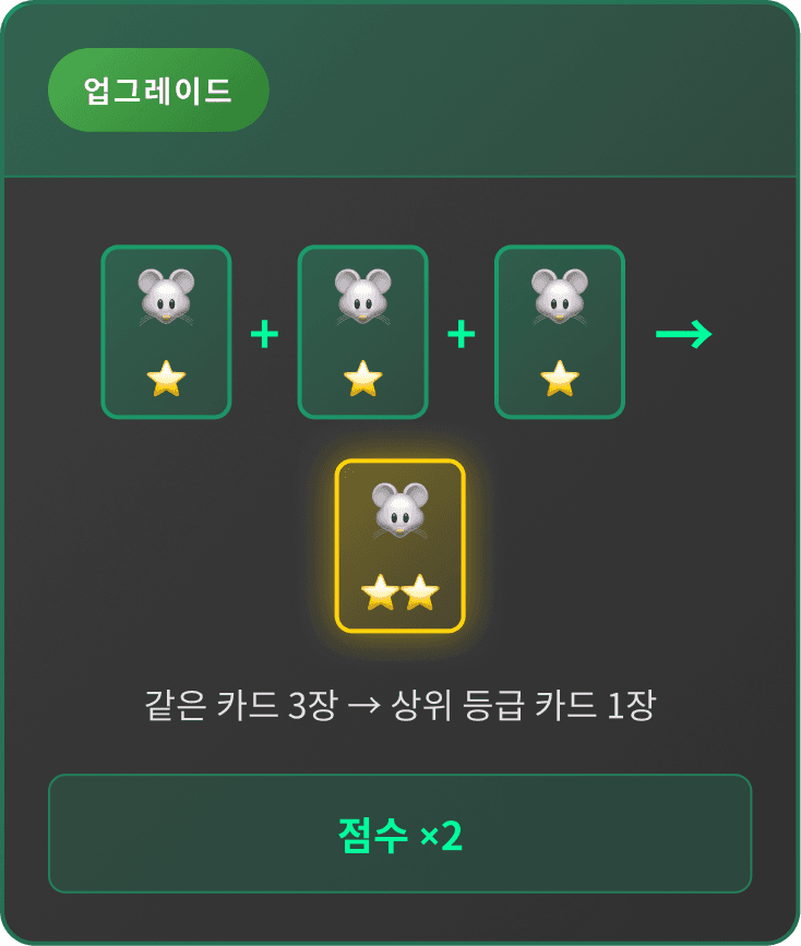 처음에는 "미션 클리어시 카드가 쌓이고, 조합하면 점수가 더 오른다" 정도만 이해하셔도 충분합니다.